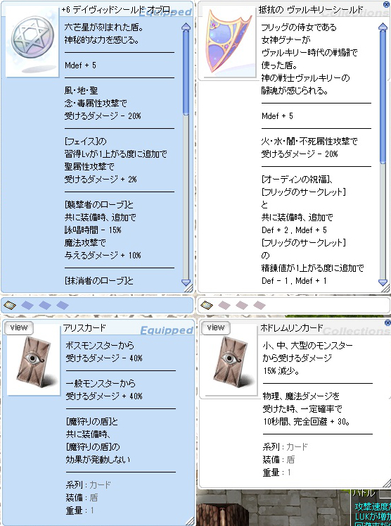 カードは基本アリスcで良いが、一部一般mobもいるため壁ならホドcやガスターcの盾と